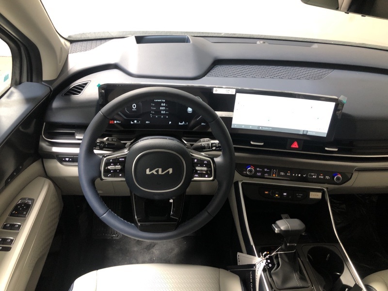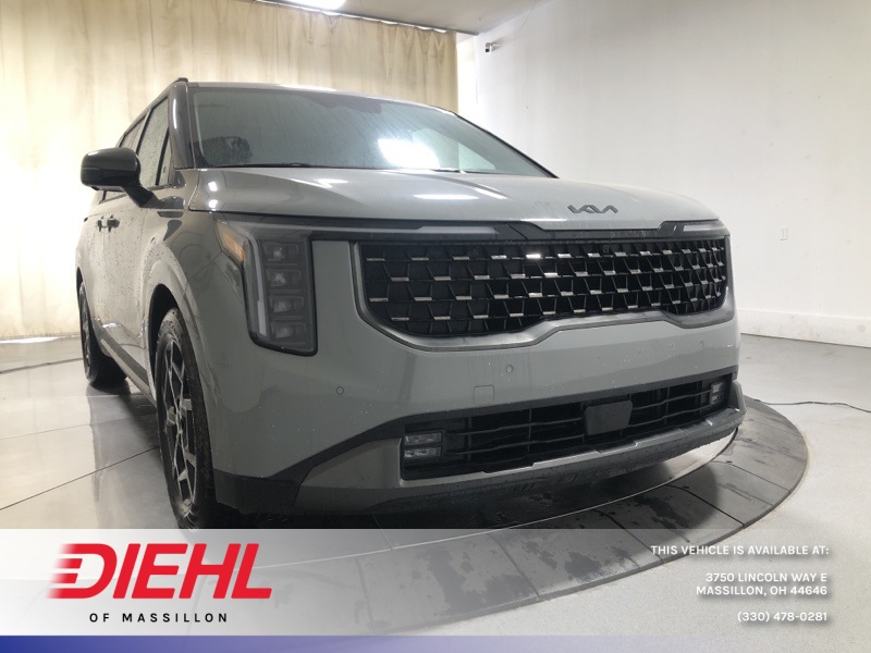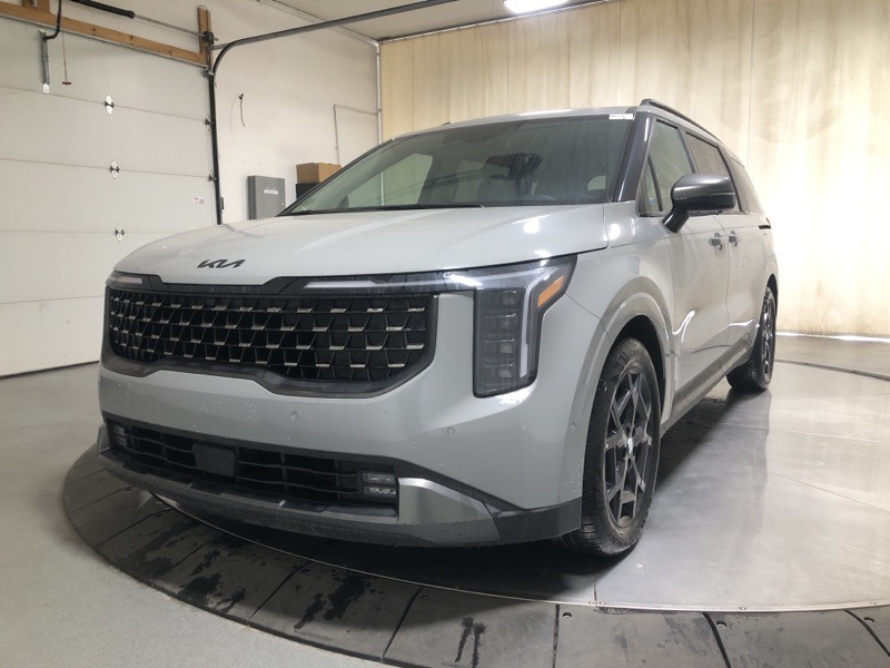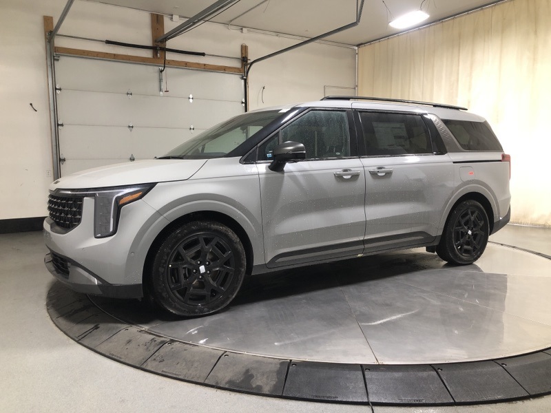 Ceramic Silver 2026 Kia Carnival SX Prestige FWD 8-Speed Automatic V6 **Alloy Wheels**, **Adaptive Cruise Control**, **Lane Keep Assist**, **Backup Camera**, **Android Auto/ Apple Carplay**, **Blind Spot Detection**, **Bluetooth**, **Heated Seats**, **Cooled Seats**, **Navigation!!**, **Sunroof**, **Remote Start**, 12 Speakers, 3.51 Axle Ratio, 3rd row seats: split-bench, 4-Wheel Disc Brakes, ABS brakes, Air Conditioning, Alloy wheels, AM/FM radio: SiriusXM, Apple CarPlay & Android Auto, Auto High-beam Headlights, Auto-dimming Rear-View mirror, Automatic temperature control, Brake assist, Bumpers: body-color, Carpeted Floor Mats (8-Passenger), Compass, Delay-off headlights, Driver door bin, Driver vanity mirror, Dual front impact airbags, Dual front side impact airbags, Electronic Stability Control, Emergency communication system, Exterior Parking Camera Rear, Four wheel independent suspension, Front anti-roll bar, Front Bucket Seats, Front Center Armrest, Front dual zone A/C, Front fog lights, Front reading lights, Fully automatic headlights, Garage door transmitter: HomeLink, Heads-Up Display, Heated & Ventilated Front Bucket Seats, Heated door mirrors, Heated front seats, Heated steering wheel, Illuminated entry, Knee airbag, Leather Shift Knob, Leather steering wheel, Low tire pressure warning, Memory seat, Navigation System, Occupant sensing airbag, Outside temperature display, Overhead airbag, Overhead console, Panic alarm, Passenger door bin, Passenger vanity mirror, Power 2nd-Row Moonroof, Power door mirrors, Power driver seat, Power Liftgate, Power moonroof, Power passenger seat, Power steering, Power windows, Pure Leather Seat Trim, Radio: AM/FM/HD Audio System, Rain sensing wipers, Rear air conditioning, Rear anti-roll bar, Rear reading lights, Rear window defroster, Rear window wiper, Reclining 3rd row seat, Remote keyless entry, Security system, Speed control, Speed-sensing steering, Split folding rear seat, Spoiler, Steering wheel mounted audio controls, Tachometer, Telescoping steering wheel, Tilt steering wheel, Traction control, Trip computer, Turn signal indicator mirrors, Variably intermittent wipers, Ventilated front seats, Wheels: 7.5J x 19" Alloy Dark Edition.