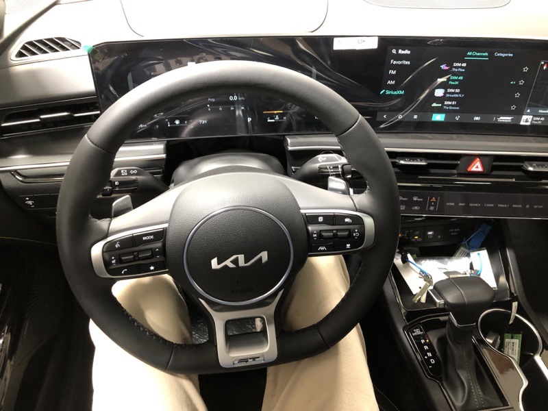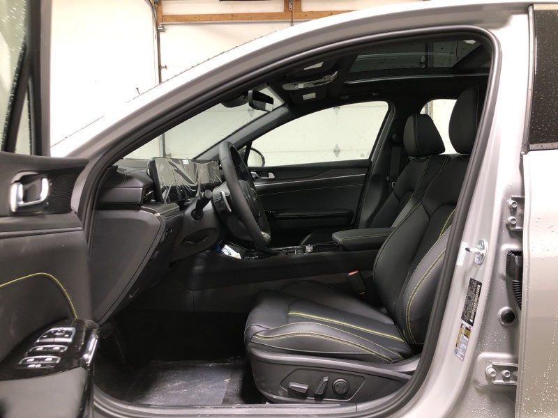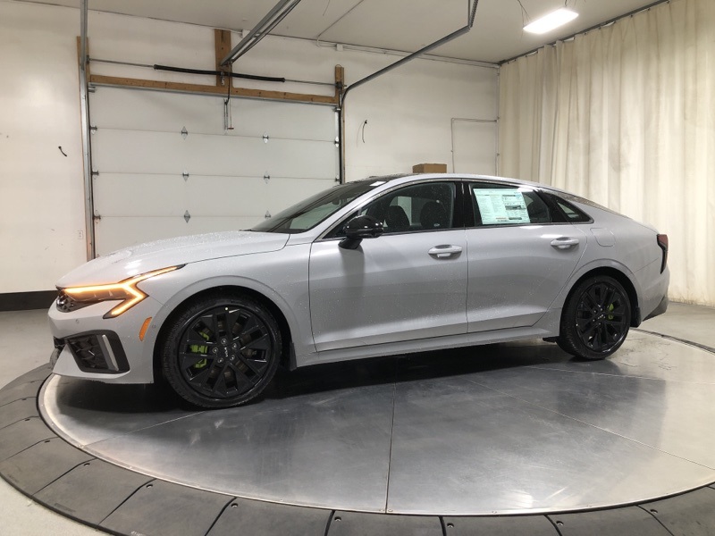 Wolf Gray 2026 Kia K5 GT FWD 8-Speed DCT I4 **Alloy Wheels**, **Adaptive Cruise Control**, **Lane Keep Assist**, **Backup Camera**, **Android Auto/ Apple Carplay**, **Blind Spot Detection**, **Bluetooth**, **Heated Seats**, **Cooled Seats**, **Navigation!!**, **Sunroof**, **Remote Start**, 4-Wheel Disc Brakes, 6 Speakers, ABS brakes, Air Conditioning, Alloy wheels, AM/FM radio: SiriusXM, Auto High-beam Headlights, Automatic temperature control, Brake assist, Bumpers: body-color, Delay-off headlights, Driver door bin, Driver vanity mirror, Dual front impact airbags, Dual front side impact airbags, Electronic Stability Control, Emergency communication system: Kia Connect (includes 1 year free trial), Four wheel independent suspension, Front anti-roll bar, Front Bucket Seats, Front Center Armrest, Front dual zone A/C, Front fog lights, Front reading lights, Fully automatic headlights, Heated door mirrors, Heated front seats, Heated Sport Bucket Seats, Illuminated entry, Knee airbag, Leather Shift Knob, Leather steering wheel, Low tire pressure warning, Navigation System, Occupant sensing airbag, Outside temperature display, Overhead airbag, Overhead console, Panic alarm, Passenger door bin, Passenger vanity mirror, Power door mirrors, Power driver seat, Power moonroof, Power steering, Power windows, Radio data system, Radio: AM/FM Audio System, Rear anti-roll bar, Rear reading lights, Rear seat center armrest, Rear side impact airbag, Rear window defroster, Remote keyless entry, Security system, Speed control, Speed-sensing steering, Split folding rear seat, Sport steering wheel, Steering wheel mounted audio controls, SynTex Seat Trim, Tachometer, Telescoping steering wheel, Tilt steering wheel, Traction control, Trip computer, Turn signal indicator mirrors, Variably intermittent wipers, Wheels: 19" x 8.0J Gloss Black Machined Finish Alloy.