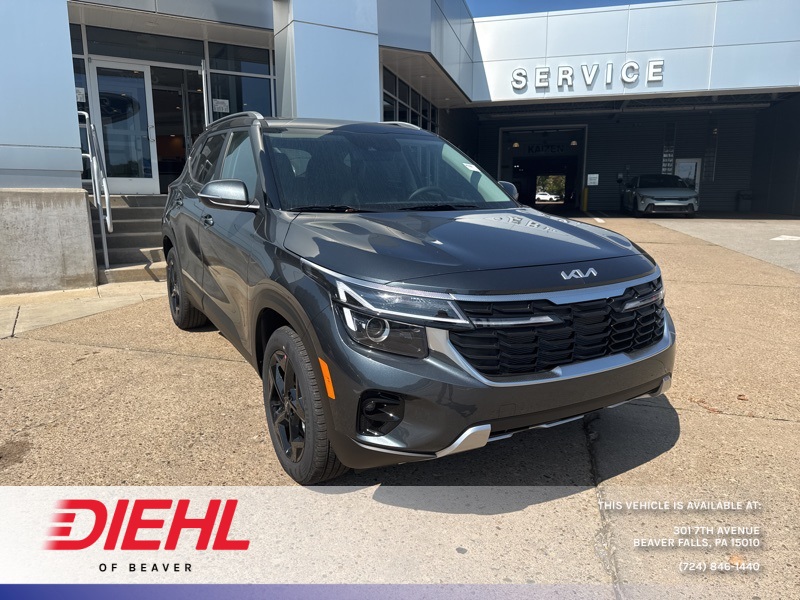**BACK UP SENSOR**, *KEYLESS START*, *ALL WHEEL DRIVE*, **BACK UP CAMERA**, **ANDROID AUTO**, **APPLE CAR PLAY**, **HEATED SEATS**, **LANE KEEP ASSIST**, **LEATHER**, **MOONROOF**, **NAVIGATION**, **POWER DRIVERS SEAT**, **POWER LIFTGATE**. Gravity Gray 2026 Kia Seltos EX AWD CVT 2.0L I4 MPI