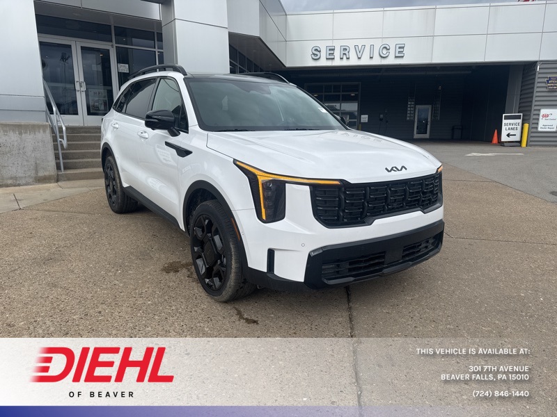 AWD. Glacial White Pearl 2026 Kia Sorento X-Line SX Prestige AWD 8 Speed Dual Clutch 2.5L I4 DGI Turbocharged DOHC 16V LEV3-SULEV30 281hp