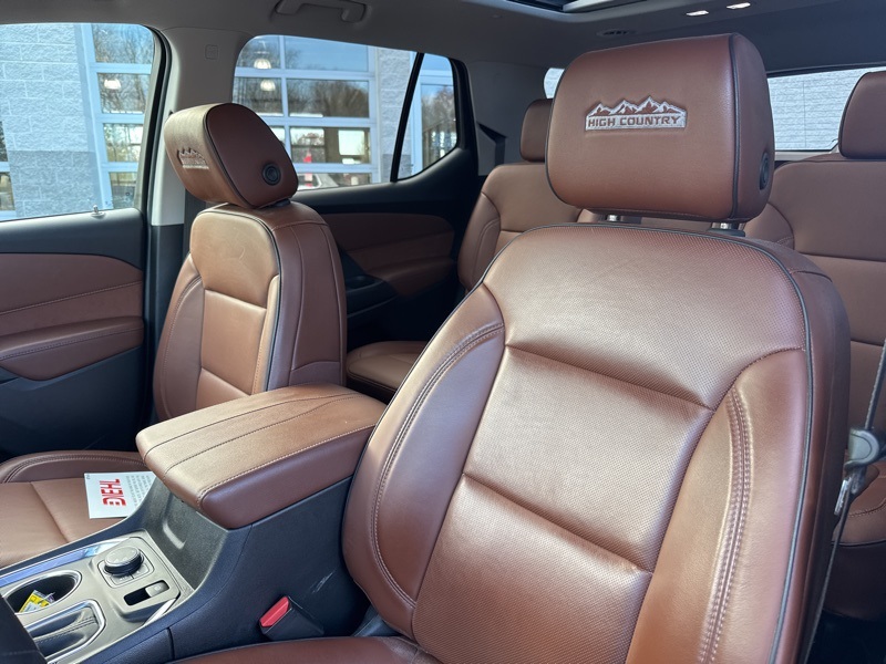 **3RD ROW SEATING**, **NAVIGATION/NAV/GPS**, **BLUETOOTH HANDS FREE**, **BACK UP CAMERA**, **ALL-WHEEL-DRIVE**, **POWER SUNROOF/MOONROOF**, **HEATED LEATHER SEATS**, **KEYLESS START**, *BACK UP SENSORS*, *APPLE CARPLAY*, **HEATED AND COOLED SEATS**, **HEATED STEERING WHEEL**, Traverse High Country, AWD, Jet Black/Loft Brown Leather, 1st & 2nd Row All-Weather Floor Liner (LPO), 3rd Row All-Weather Floor Liner (LPO), Floor Liner Package (LPO), Integrated Cargo Liner (LPO), Preferred Equipment Group 2LZ. Priced below KBB Fair Purchase Price!
