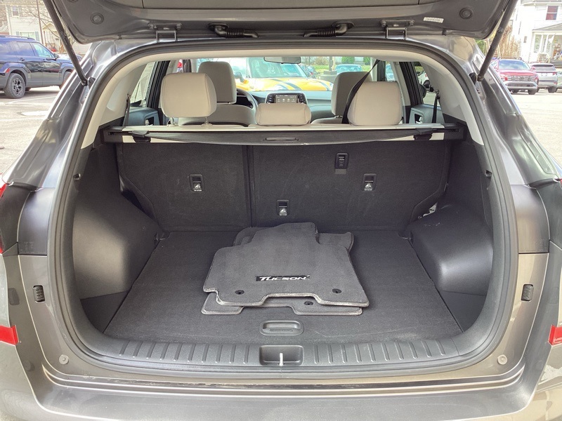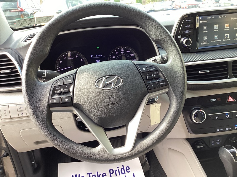AWD, 17" x 7.0J Alloy Wheels, 4-Wheel Disc Brakes, 6 Speakers, ABS brakes, Air Conditioning, Alloy wheels, AM/FM radio, Apple CarPlay & Android Auto, Axle Ratio: 3.648, Brake assist, Bumpers: body-color, Cargo Cover, Carpeted Floor Mats, Delay-off headlights, Driver door bin, Driver vanity mirror, Dual front impact airbags, Dual front side impact airbags, Electronic Stability Control, Exterior Parking Camera Rear, First Aid Kit, Four wheel independent suspension, Front anti-roll bar, Front Bucket Seats, Front Center Armrest, Front reading lights, Fully automatic headlights, Illuminated entry, Low tire pressure warning, Occupant sensing airbag, Option Group 01, Outside temperature display, Overhead airbag, Overhead console, Panic alarm, Passenger door bin, Passenger vanity mirror, Power door mirrors, Power steering, Power windows, Radio: AM/FM Audio System, Rear anti-roll bar, Rear seat center armrest, Rear window defroster, Rear window wiper, Remote keyless entry, Security system, Speed control, Speed-sensing steering, Split folding rear seat, Spoiler, Steering wheel mounted audio controls, Tachometer, Telescoping steering wheel, Tilt steering wheel, Traction control, Trip computer, Variably intermittent wipers, YES Essentials Stain-Resistant Cloth Seat Trim. New Price! Magnetic Force Metallic 2020 Hyundai Tucson SE AWD 6-Speed Automatic with Shiftronic I4