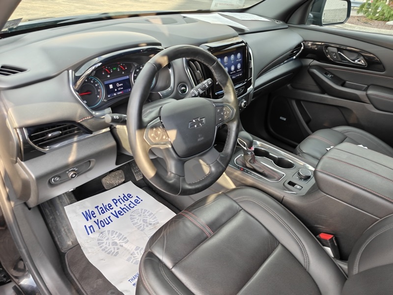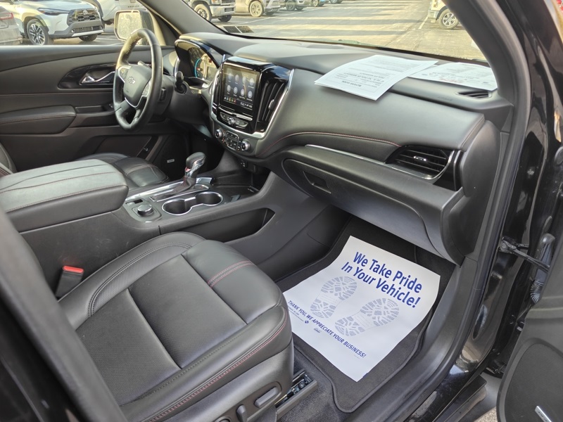 **ONE OWNER**, **CLEAN CARFAX**, **3MONTH-3,000 MILE WARRANTY INCLUDED**, **NEW TIRES!!**, **HEATED SEATS**, **ADAPTIVE CRUISE CONTRL**, **LANE KEEP ASSIST**, **BLIND SPOT DETECTION**, **FRONT CRASH DETECTION**, **BLUETOOTH**, **BACKUP CAMERA**, **PREMIUM WHEELS**, **3RD ROW SEATING**, ** REMOTE START**, **360 SURROUND CAMERA**, **ANDROID AUTO**, **APPLE CARPLAY*, Traverse RS, AWD, Mosaic Black Metallic, Jet Black/Spice Red Leather, 4-Wheel Disc Brakes, 6-Way Power Front Passenger Seat, 8-Way Power Driver Seat Adjuster, ABS brakes, Apple CarPlay/Android Auto, Auto High-beam Headlights, Automatic temperature control, Bose Premium 10-Speaker Audio System Feature, Delay-off headlights, Exterior Parking Camera Rear, Front dual zone A/C, Fully automatic headlights, Heated Driver & Front Passenger Seats, Low tire pressure warning, Navigation System, Power driver seat, Power Liftgate, Preferred Equipment Group 2LT, Premium audio system: Chevrolet Infotainment 3 Plus, Remote keyless entry, Steering wheel mounted audio controls, Telescoping steering wheel, Tilt steering wheel.
