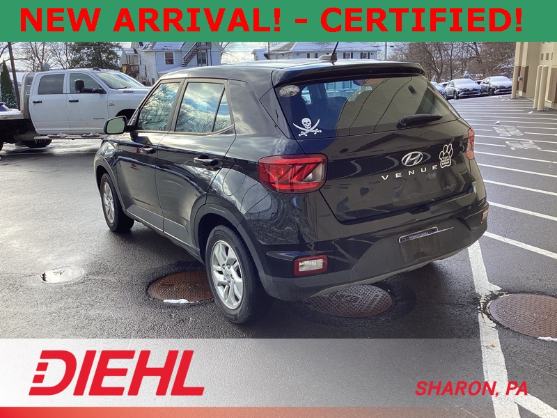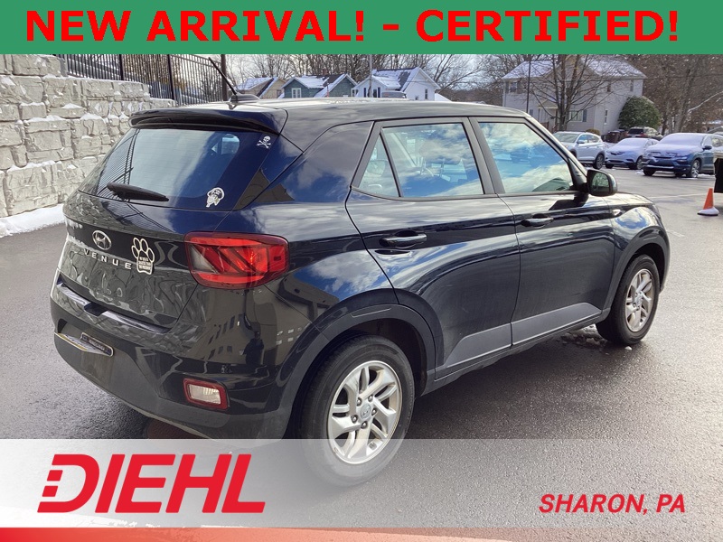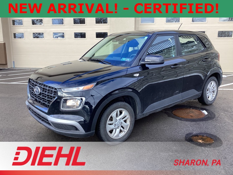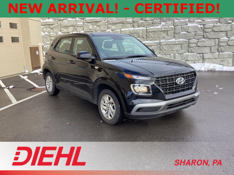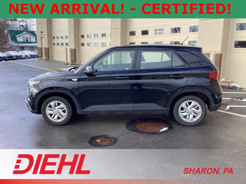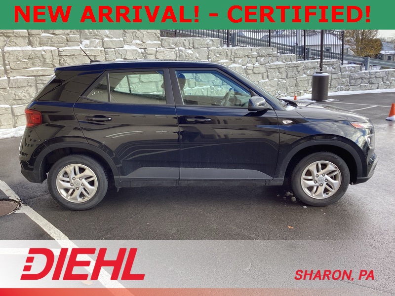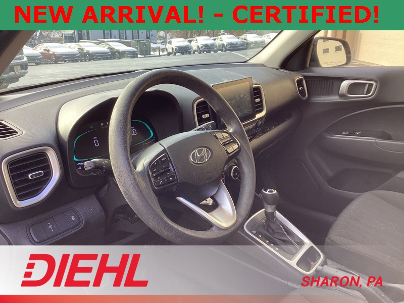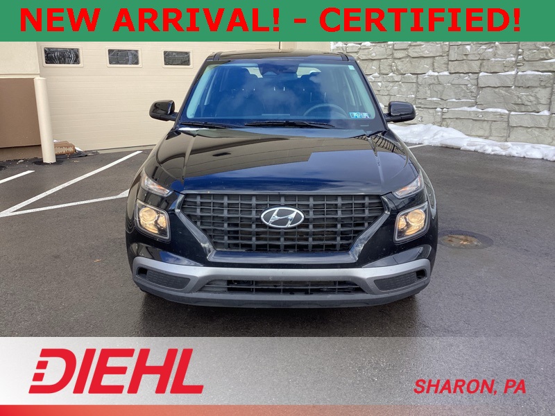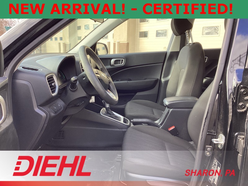 **ONE-OWNER**, **APPLE CAR PLAY**, **ANDROID AUTO**, **CERTIFIED PRE OWNED**, 4 Speakers, 6.052 Axle Ratio, ABS brakes, Air Conditioning, Alloy wheels, AM/FM radio, Apple CarPlay & Android Auto, Auto High-beam Headlights, Brake assist, Bumpers: body-color, Cargo Net, Cargo Tray, Carpeted Floor Mats, Cloth Seat Trim, Delay-off headlights, Driver door bin, Driver vanity mirror, Dual front impact airbags, Dual front side impact airbags, Electronic Stability Control, Front anti-roll bar, Front Bucket Seats, Front Center Armrest, Front reading lights, Front wheel independent suspension, Fully automatic headlights, Illuminated entry, Low tire pressure warning, Occupant sensing airbag, Option Group 01, Outside temperature display, Overhead airbag, Overhead console, Panic alarm, Passenger door bin, Passenger vanity mirror, Power door mirrors, Power steering, Power windows, Radio: AM/FM/HD Display Audio, Rear Bumper Applique, Rear Seat Cup Holder, Rear window defroster, Rear window wiper, Remote keyless entry, Security system, Speed control, Speed-sensing steering, Split folding rear seat, Spoiler, Steering wheel mounted audio controls, Tachometer, Telescoping steering wheel, Tilt steering wheel, Traction control, Trip computer, Variably intermittent wipers, Wheels: 6.0J x 15" Alloy. Certified. Black Noir Pearl 2023 Hyundai Venue SE FWD CVT I4