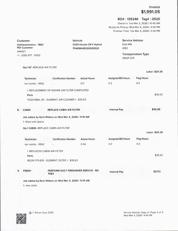 - Cabin air filter