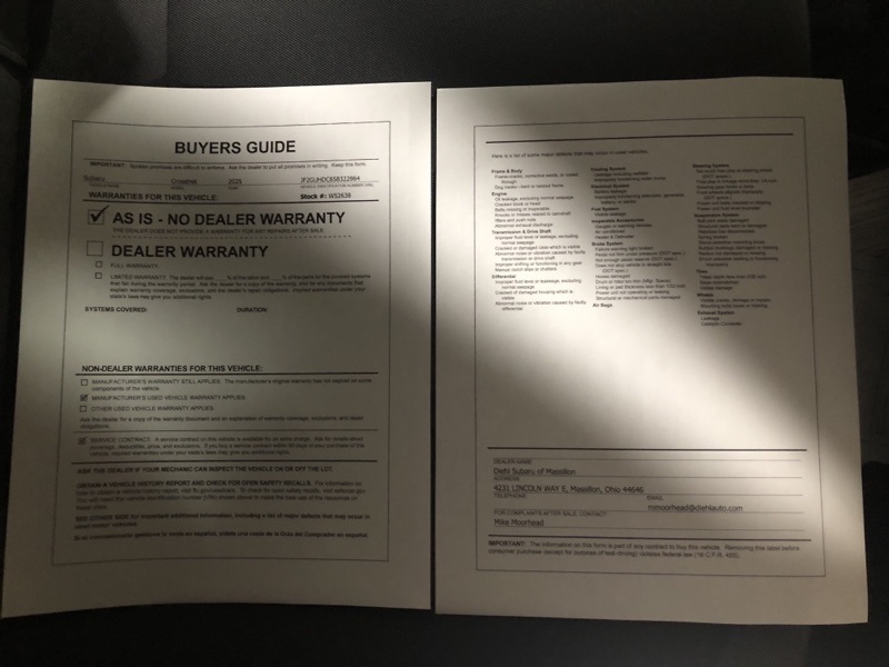 *Confirm any warranty information with dealer before purchase.Roadside warranty